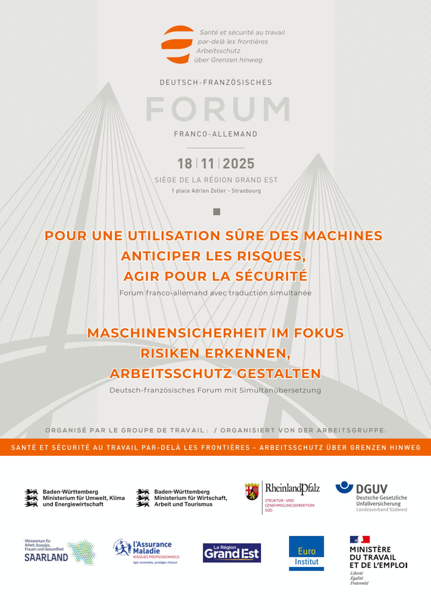 Comme chaque année, le groupe de travail franco-allemand santé et sécurité au travail par-delà les frontières, auquel participe la DREETS Grand Est, organise une manifestation ouverte à toutes et à tous.